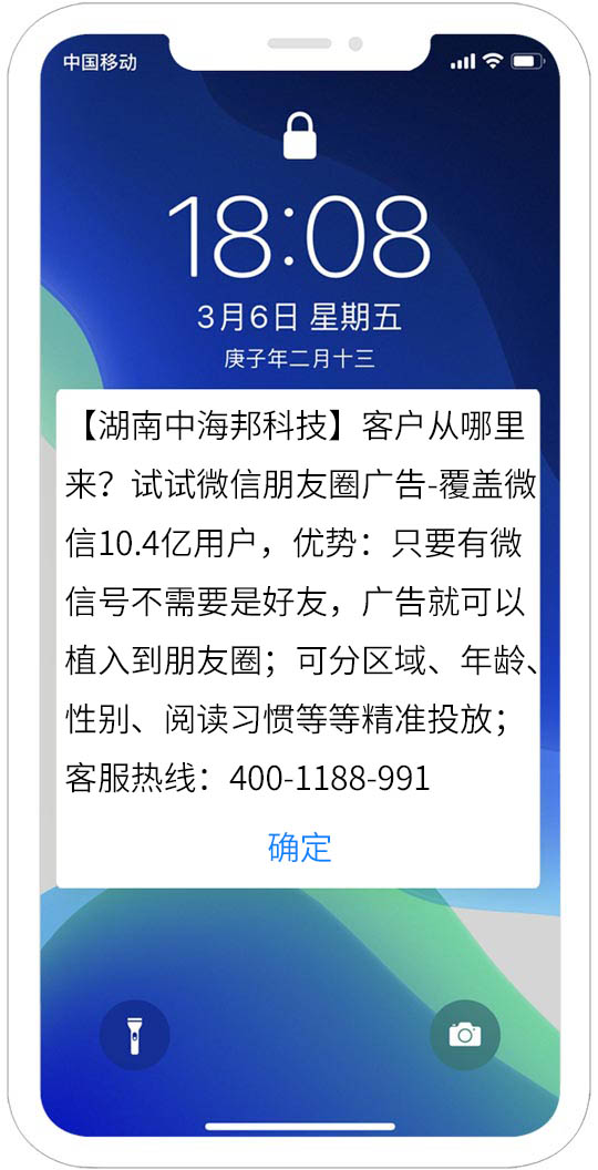 沒有一種短信能不被手機(jī)攔截呢?試試紅楓葉閃信群發(fā),紅楓葉閃信群發(fā),(又稱彈屏短信、霸屏短信)是指用戶在收到閃信群發(fā)內(nèi)容后,無需打開,短信內(nèi)容直接顯示在用戶手機(jī)屏幕上,用戶如果沒有點(diǎn)擊閱讀,則閃信內(nèi)容一...